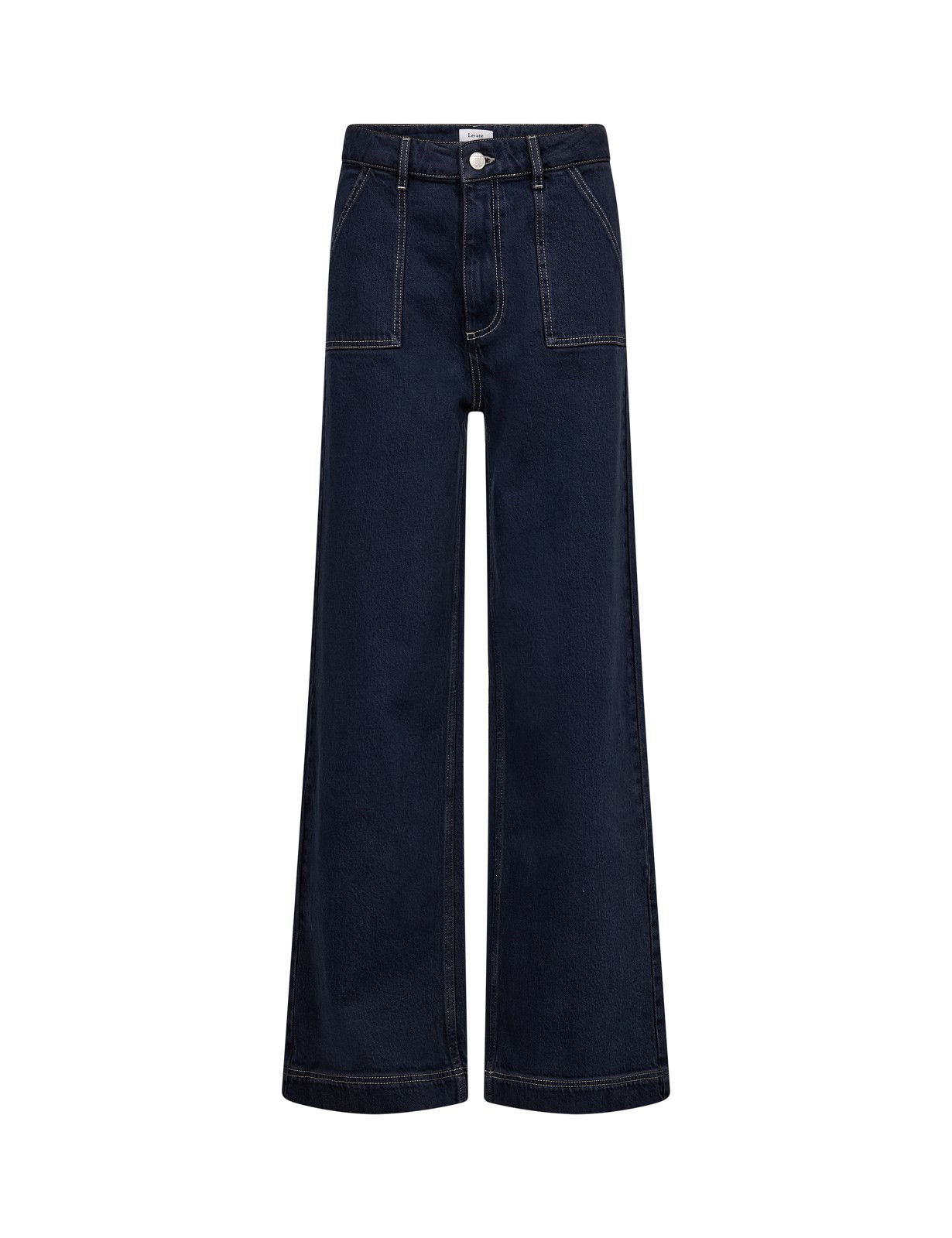 LR-KOSA 17 Jeans er fremstillet af 99 % økologisk bomuld og 1 % elastan. Bukserne har et højtaljet design, brede ben og påsatte lommer foran med knapdetaljer.