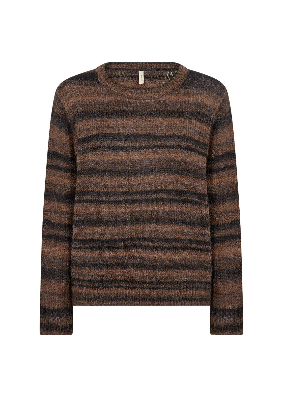 SC-ARENSE 1 er en pullover fremstillet af 36 % genbrugspolyester, 30 % polyester, 26 % akryl og 8 % uld. Den har en klassisk rund halsudskæring, lange ærmer og et spændende stribet mønster.