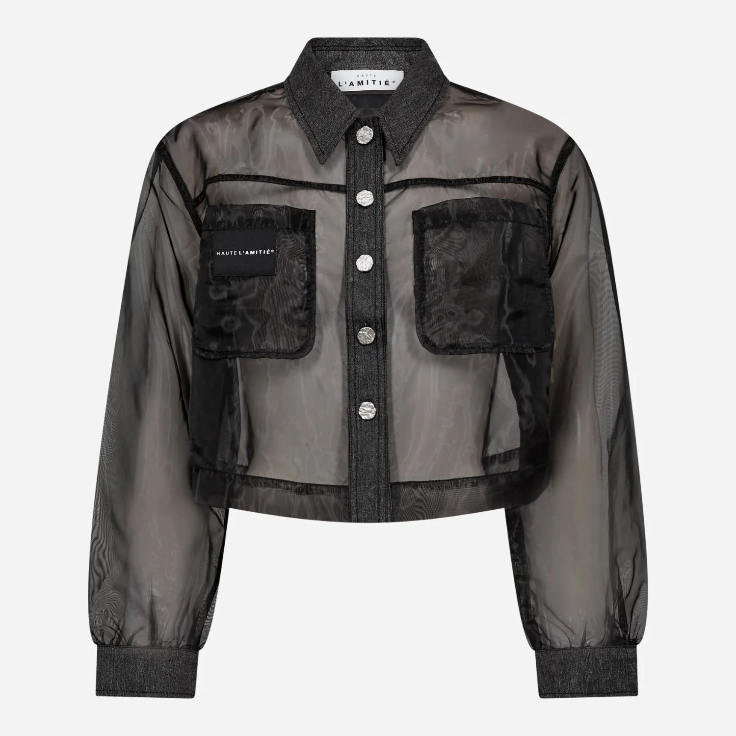 HL-ORGANZA CROP DENIM SHIRT BLACK