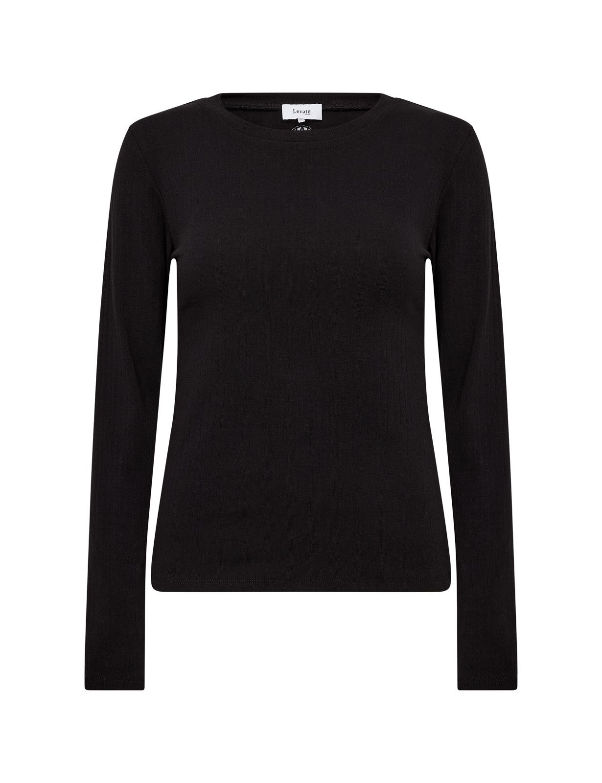 LR-NEDDIE 4 er en T-shirt fremstillet af 73 % økologisk bomuld, 21 % polyester og 6 % elastan. Den har en ribbet tekstur og en klassisk rund halsudskæring med lange ærmer.