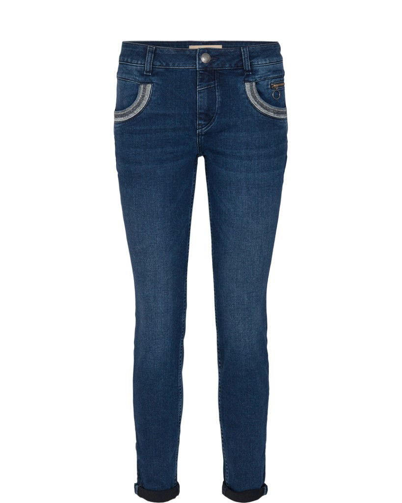 MOS MOSH JEANS NAOMI LUNA LB. Skønne Naomi Jeans designet I et regulært fit med høj-/mellemtalje. Denne populære MOS MOSH style er designet til både at kunne sidde lavt på hoften for et cool look såvel som højtaljet for et mere sofistikeret look – og så har den fine decorationer på frontlommerne.