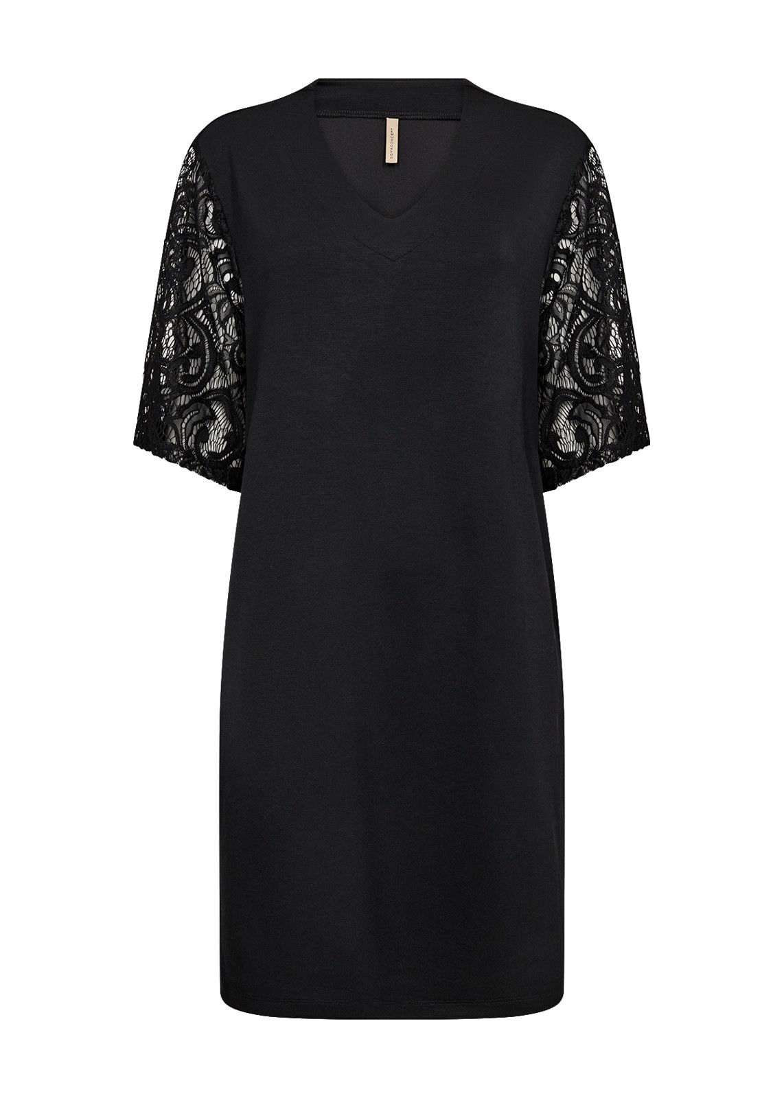 SC-BANU 272 er en kjole fremstillet af 48 % modal, 48 % polyester og 4 % elastan. Kjolen har V-udskæring og elegante blondeærmer, der giver et strejf af raffinement.
