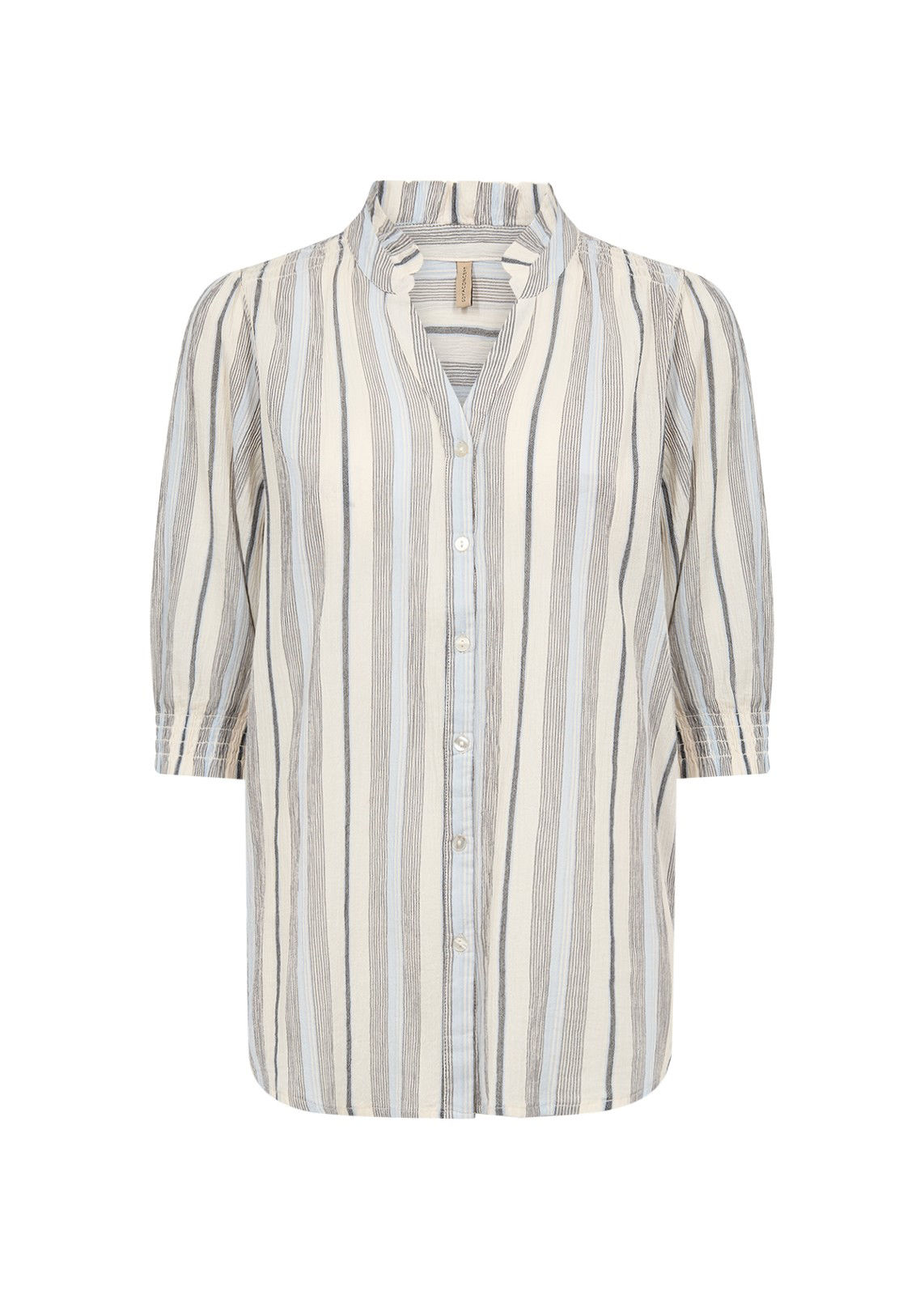 SC-CAROLA 1 Bluse er fremstillet af 100 % økologisk bomuld. Den har en fin flæsekrave, knaplukning foran og et charmerende stribet print.